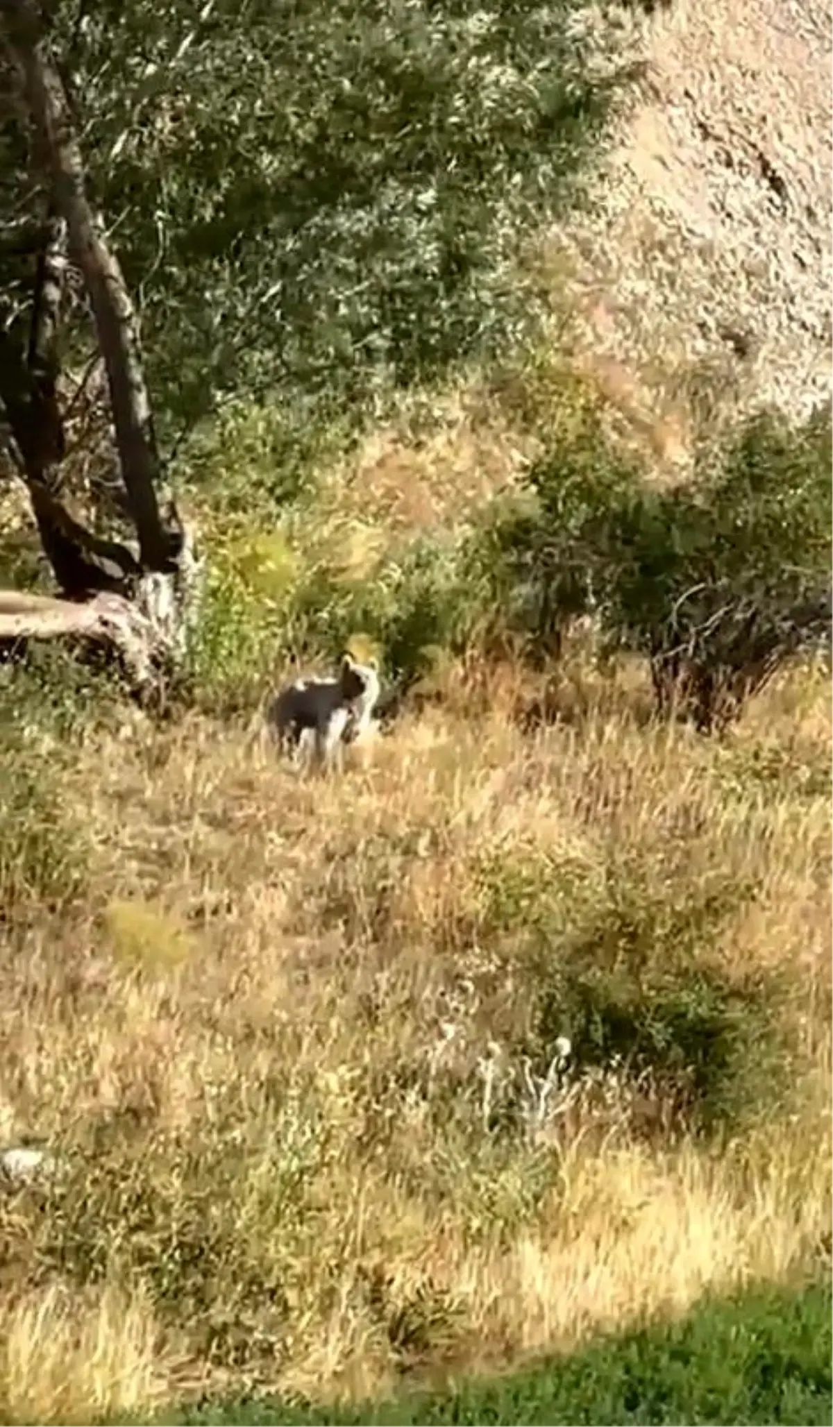 Helvacı, cep telefonuyla ayıyı kayıt altına alırken, yanındaki kızı büyük bir heyecanla “Ayı geliyor, ayı” diyerek bağırdı. Küçük kızın sesiyle irkilen ayı, bir mühlet baba ve kızını uzaktan izledikten sonra ağaçlık alanda gözden kayboldu. – BAYBURT